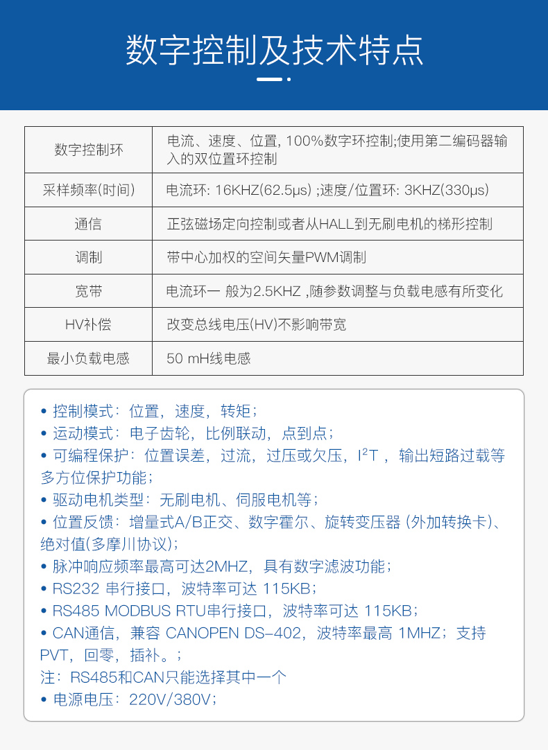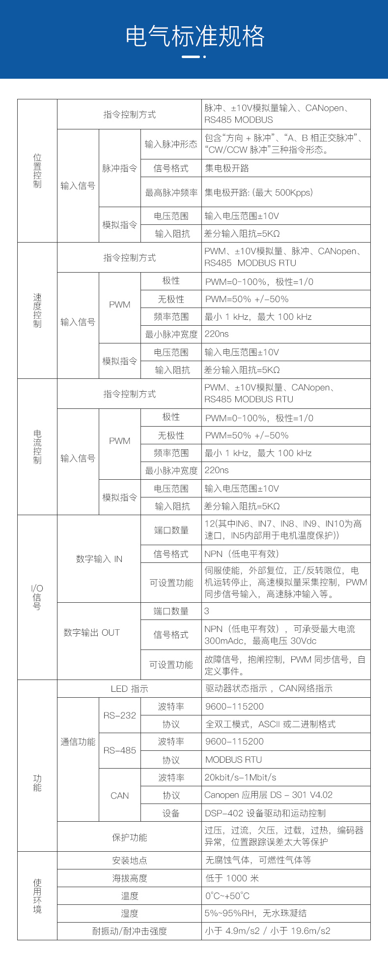 ?CAN2.0 局域總線(xiàn),兼容 CANopen DS-402,波特率最高 1MHz ;