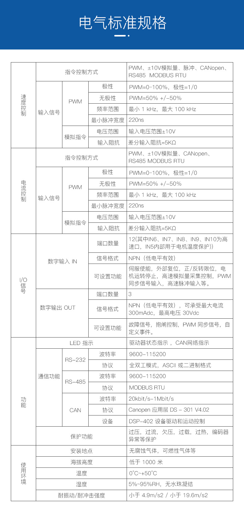 ?CAN2.0 局域總線(xiàn),兼容 CANopen DS-402,波特率最高 1MHz ;